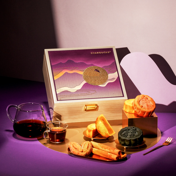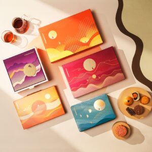 毎年人気のトリュフ入り「黑松露奶皇藏芯月餅」やジンが香る「蜂蜜柚香琴酒奶皇月餅」、伝統的な「棗泥核桃月餅」など4種類の月餅と他2種類のお菓子が入ったセットです。